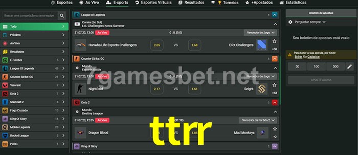 O ttrr oferece uma grande seleção de opções de apostas em e-sports com probabilidades competitivas